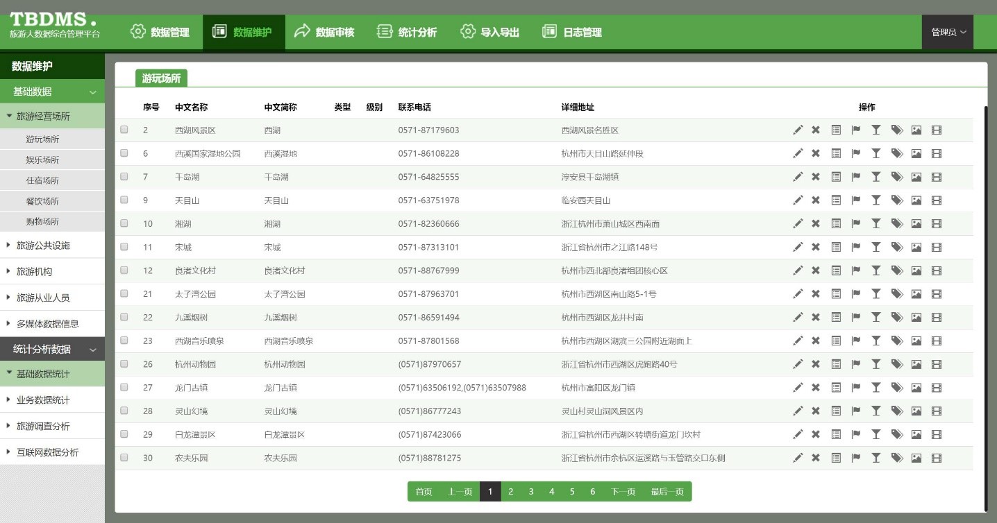 用于各類業務數據、橫向管理部門和其他涉旅數據的管理和維護。