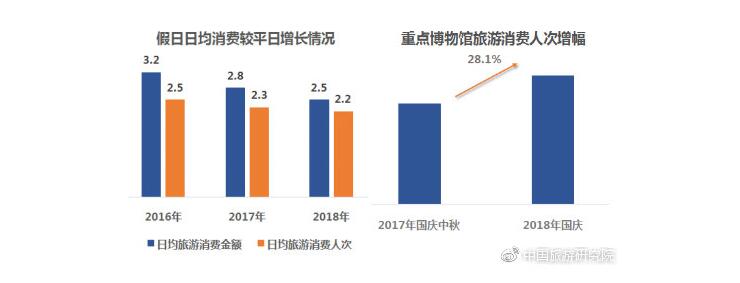數據顯示,假日旅游日均消費金額及消費人次均超過平日的2倍以上。隨著國家對文化旅游的大力推進,假日期間豐富多彩的各類文化展覽吸引大量游客參與。2018年國慶,重點博物館消費人次同比增長達28.1%。