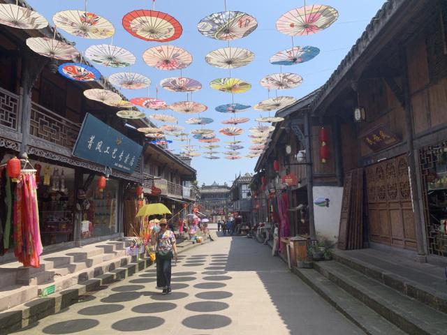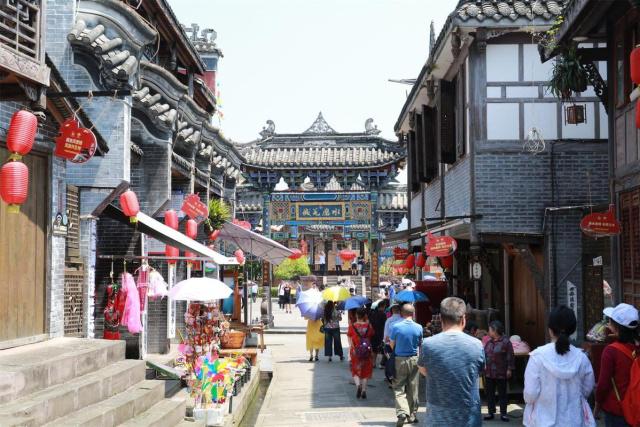 游人在水磨鎮獨具特色的古街漫步