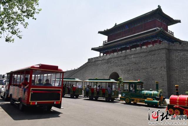 近日,游客乘坐觀光小火車在正定古城游玩。 記者史晟全攝