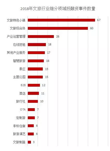 投融資事件數(shù)量最多的是目的地資源端的文旅特色小鎮(zhèn)和文旅綜合體項目,兩者相加為129起,占全部投融資事件數(shù)量的43.6%。