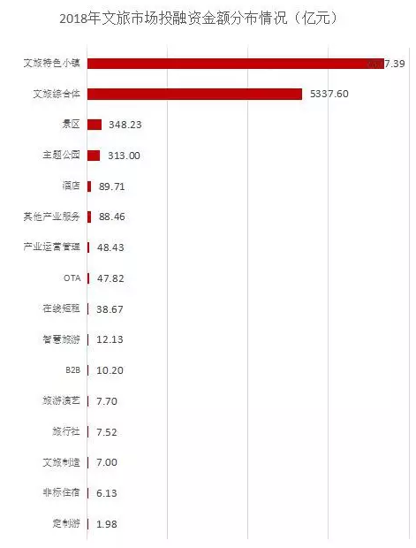 從投融資金額來看,目的地資源端重資產(chǎn)項目投資占據(jù)了總金額的絕大部分,其中文旅特色小鎮(zhèn)和文旅綜合體投資體量最大,兩者投資規(guī)模合計達到12714.99億元,占到總金額的92.53%。