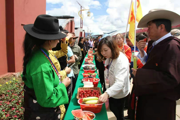 “口感好,味道甜,只有小時候吃過這種番茄味道,真沒想到在海拔4000米的高原能成為溫帶瓜果蔬菜的產(chǎn)地”。7月30日上午,在理塘縣濯桑鄉(xiāng)舉行的甘孜州農(nóng)特產(chǎn)品產(chǎn)銷對接現(xiàn)場會,吸引了91家來自韓國、廣東、上海、成都等國內(nèi)外知名農(nóng)業(yè)龍頭企業(yè)及電商企業(yè)、20家旅行社、36家媒體代表參加。這也是甘孜州首次舉辦的大型涉農(nóng)商貿(mào)活動。