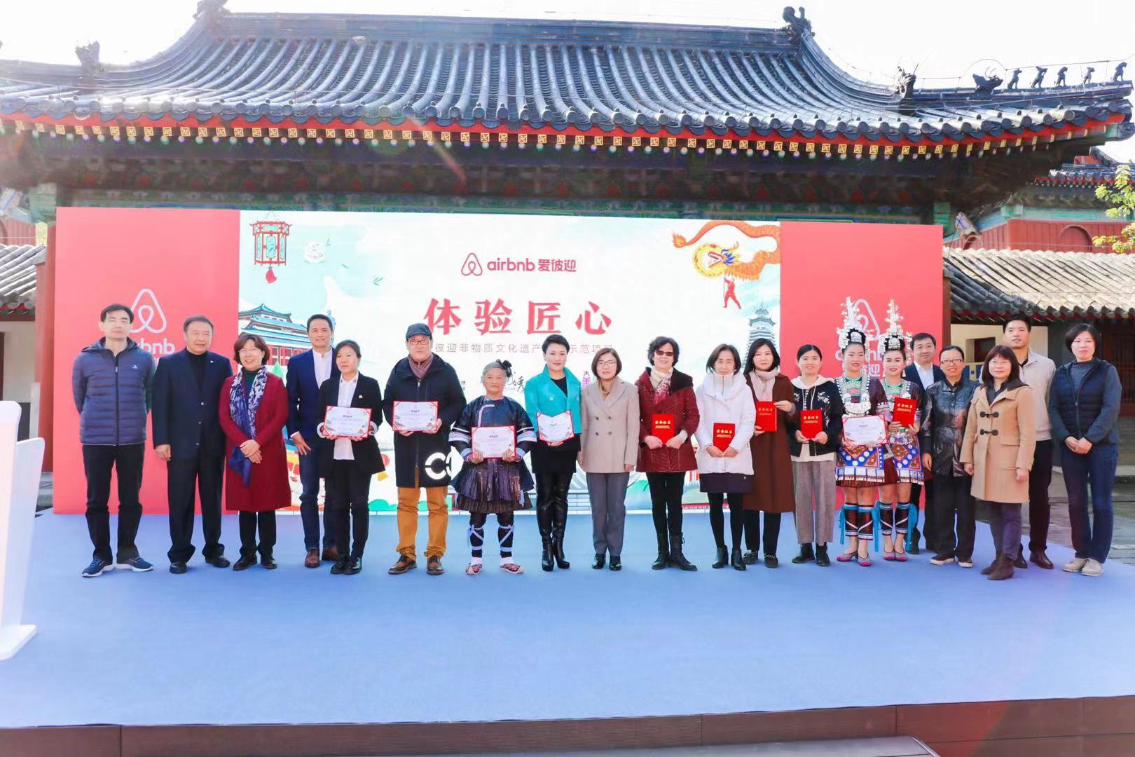 10月29日, Airbnb愛彼迎“體驗匠心”第一階段非物質文化遺產旅游示范項目閉幕儀式在北京舉行,世界旅游聯(lián)盟秘書長劉士軍、北京市東城區(qū)副區(qū)長趙凌云、愛彼迎中國總裁彭韜以及來自各地的非物質文化遺產傳承人等嘉賓出席了活動。