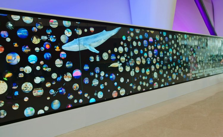 步入國(guó)家海洋博物館中央大廳,映入眼簾的是一個(gè)長(zhǎng)8米、高2米的智慧互動(dòng)屏。屏幕上,上千張展品照片化身一個(gè)個(gè)海洋氣泡,組成一面氣泡墻。輕點(diǎn)氣泡,參觀者不僅可以360°瀏覽電子展品,還能觀看知識(shí)拓展小視頻,游客可以將感興趣的展品添加到“我的行程單”,掃描二維碼,即可形成定制化游覽線路,實(shí)時(shí)獲取行程信息,并提供產(chǎn)品導(dǎo)航服務(wù)。