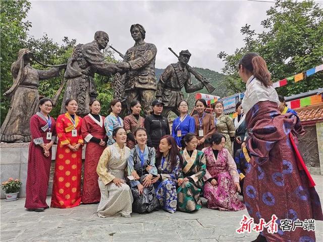 在迭部縣旺藏鎮(zhèn)茨日那村口,游客正在毛主席雕像前拍照留念。新甘肅·甘肅日報記者 徐錦濤攝