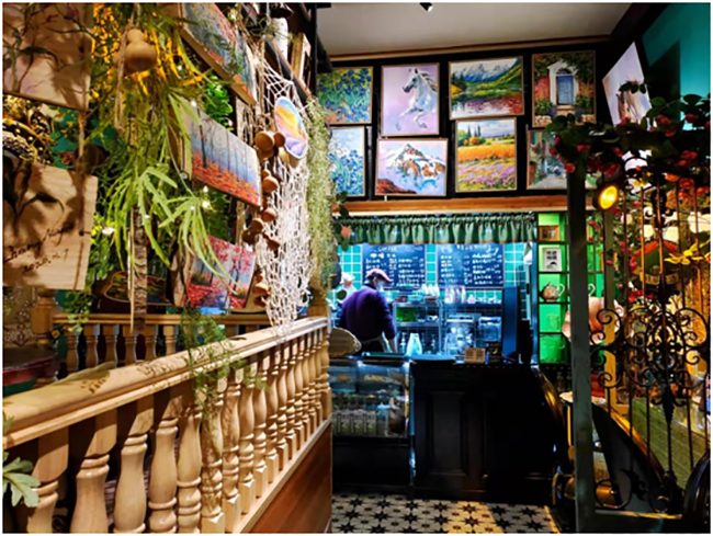 大泥溝頭村青年張友杰在某職業中專學習素描,回村看到新建的畫院之后,經過一番考察,他毅然決定選擇退學,跟隨畫院老師學習油畫,學習5年后,張友杰在村里獨立門戶接單創作,完成了創業人生的最初積累。2017年,張友杰創辦了自己的油畫咖啡館、藝術畫廊和民宿項目,嘗試將油畫創作和日常生活相結合。如今,他的咖啡館已成為網紅打卡地,一條抖音的點擊量就達到3.5萬人次。