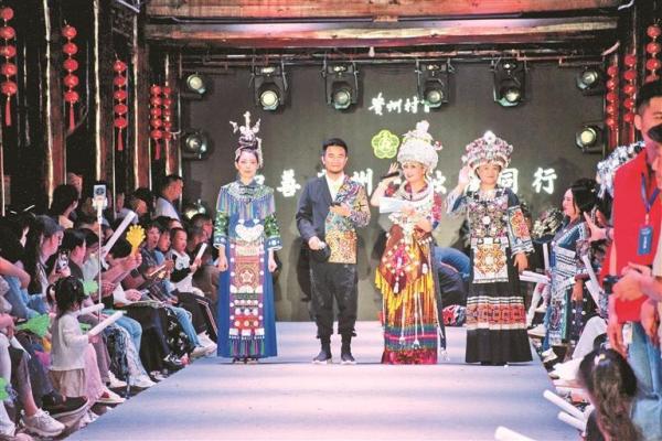 2024年7月,他發(fā)起首次公益“村T”活動,吸引了600名村民演員和2000名觀眾參與。如今,銀飾清脆作響,繡裙隨風(fēng)輕揚(yáng),七旬老人牽著孫兒穩(wěn)步走上T臺,年輕游客揮袖轉(zhuǎn)身、笑容燦爛。“村T”已舉辦了500余場主題走秀,吸引近5萬名群眾登臺展示。在“村T”吸引下,超過40萬名游客進(jìn)場觀看,秀場附近集市上,服裝租賃、飾品銷售額增長200%,并帶動周邊民宿、餐飲業(yè)發(fā)展。