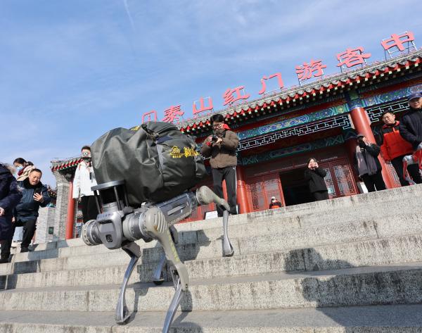 在泰山的山道上,還有一群特殊的“工作者”——泰山“智能挑夫”機器狗。泰山地形復雜,難以實施大規模機械化作業,垃圾清掃和運輸主要依靠人工挑運,工作辛苦,成本高昂。而泰山“智能挑夫”機器狗通過搭載人工智能、運動控制、傳感器等技術,能夠靈活應對泰山復雜崎嶇的山路。這些機器狗的靜態最大承載力可達120公斤,在云霧繚繞的山間,在晨光暮色的映照下,默默工作,用科技的力量守護著山道的潔凈。