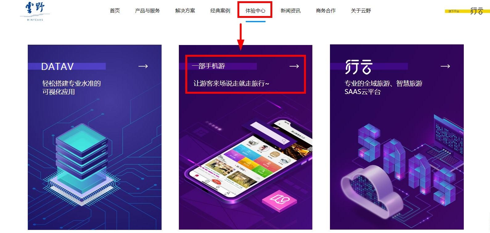 下面介紹下云野的“一部手機(jī)游”景區(qū)管理平臺軟件特色功能,如需要直接體驗(yàn)的用戶可登入官網(wǎng)m.kaiqizhe.com,點(diǎn)擊導(dǎo)航欄“體驗(yàn)中心”-------- “一部手機(jī)游”即可體驗(yàn)。